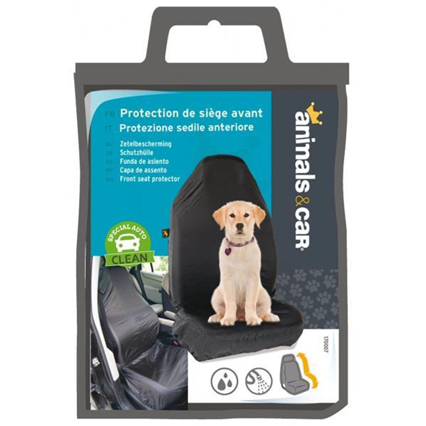 Coprisedile anteriore impermeabile, indispensabile per proteggere il sedile da sporco, peli e graffi. Facile da montare grazie ai tenditori e ai tubi di spugna da inserire tra schienale e sedile. Lavabile a mano. In poliestere rivestito. Compatibile con sedili provvisti di airbag laterali.