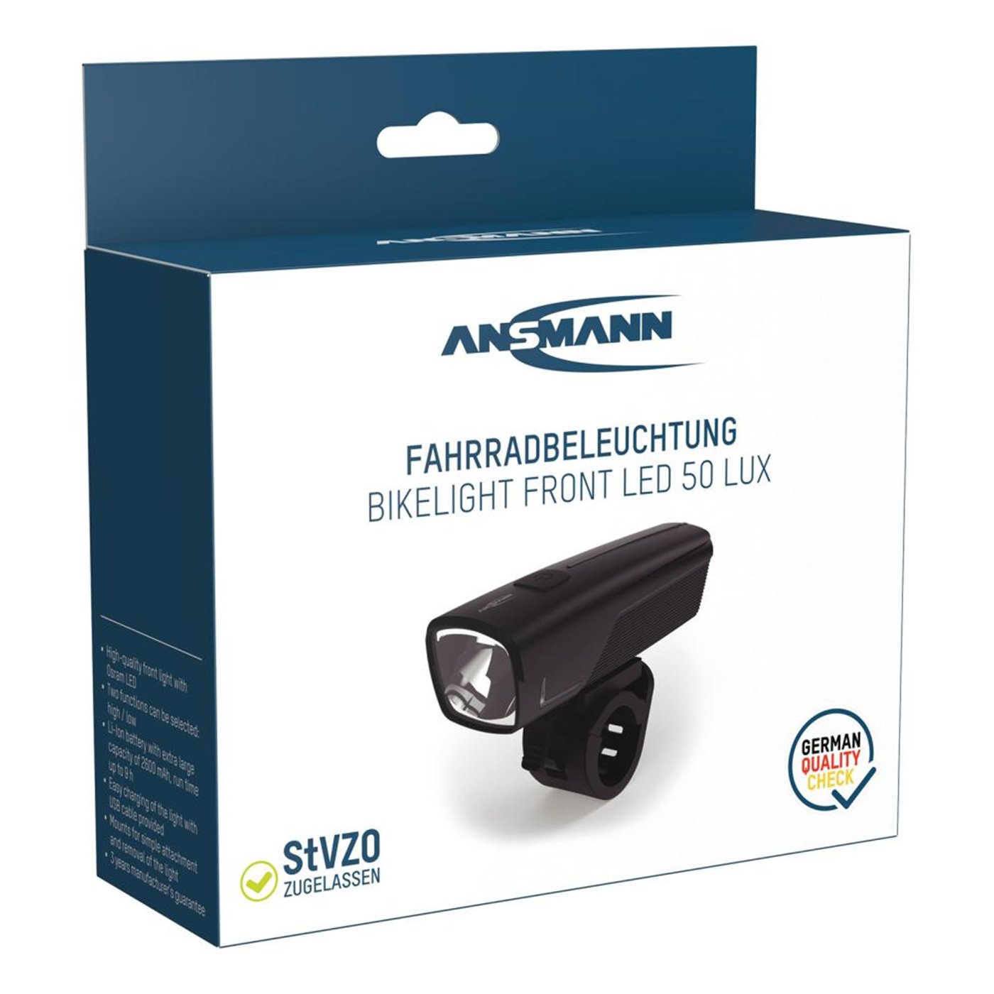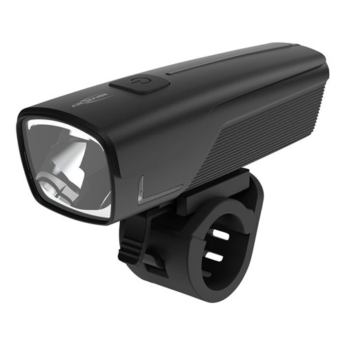 Luce anteriore per bici con led Osram, omologata per l’uso sulle strade pubbliche tedesche. In plastica robusta e resistente, con speciale riflettore per un’illuminazione ottimale e un fascio luminoso antiabbagliante. Luminosità: 50 Lux a una distanza di 10 m. Portata luminosa fino a 200 m. Due funzioni di luce selezionabili: alta/bassa. Batteria con indicatore di carica residua, durata fino a 9 ore. Supporto per fissaggio e rimozione facile. Dimensioni/peso 11,2 × 3,9 × 7,5 cm / 130 g.