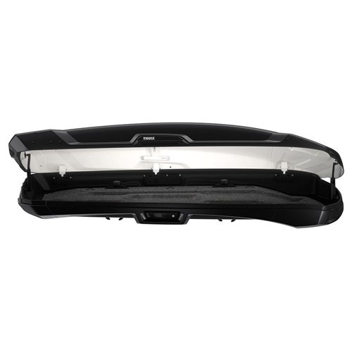 Un box da tetto unico che combina perfettamente stile e funzionalità di alto livello. Provvisto di apertura Dual-Side con maniglie esterne per agevolare montaggio, carico e scarico e di chiusura SlideLock grazie alla quale il coperchio si blocca automaticamente non appena viene chiuso. Facile da montare grazie al sistema di fissaggio rapido PowerClick preinstallato, con indicatore di coppia integrato che emette un click quando il serraggio viene eseguito correttamente in modo da garantire un montaggio veloce e sicuro. Massimo accesso al bagagliaio con il minimo rischio di contatto con il box grazie alla posizione avanzata sul tetto. Interno di grande qualità con illuminazione integrata e base rivestita in feltro per una maggiore protezione dell’attrezzatura. Dimensioni esterne: 212x88x35,5 cm. Dimensioni interne: 186x63,5x29,5 cm. Capacità: 310 L. Portata: 75 kg. Peso: 26,9 kg. Numero max di paia di sci/snowboard trasportabili: 3-5/3-4. Lunghezza max sci: 185 cm. Certificato TUV/GS e conforme alle norme City Crash. Garanzia: 5 anni. Colore: nero metallizzato.