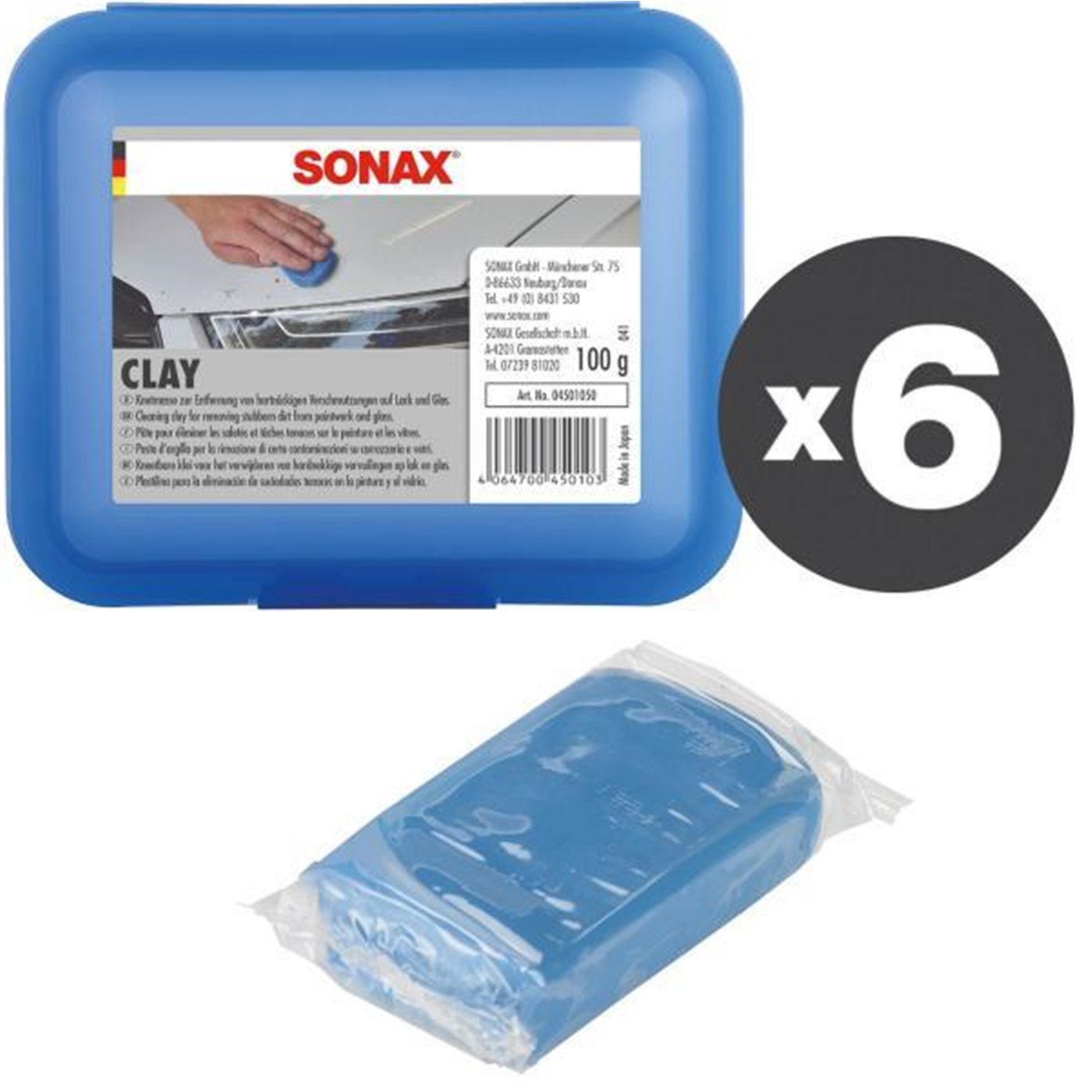 Argilla pregiata e durevole per la rimozione dello sporco aderente su vernice, vetro e superfici cromate. Qualità top, prodotto originale giapponese. Confezione da 6 Clay in scatola da 100 g.