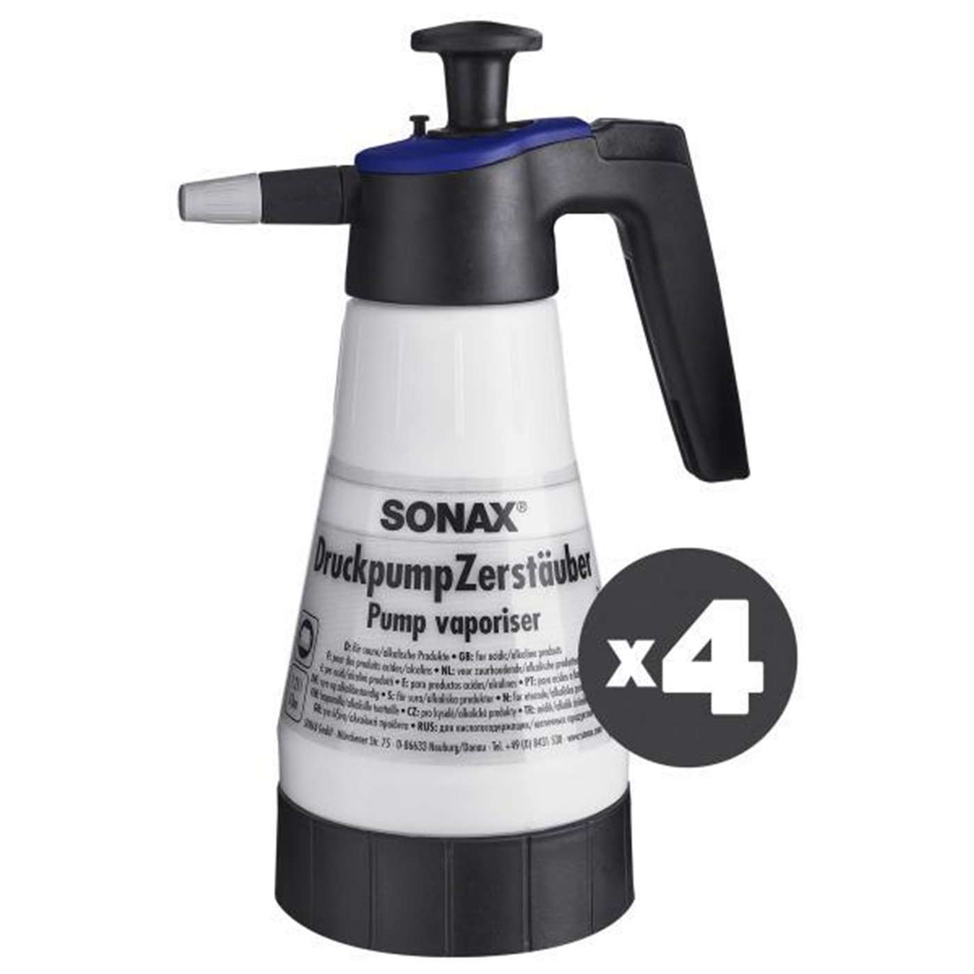 Vaporizzatore spray per la pratica applicazione di detergenti e prodotti di cura delle superfici SONAX contenenti acidi e alcali. Con nebulizzatore regolabile. Volume: 1,25 L. Pressione di esercizio: max 3 bar. Confezione da 4 vaporizzatori.