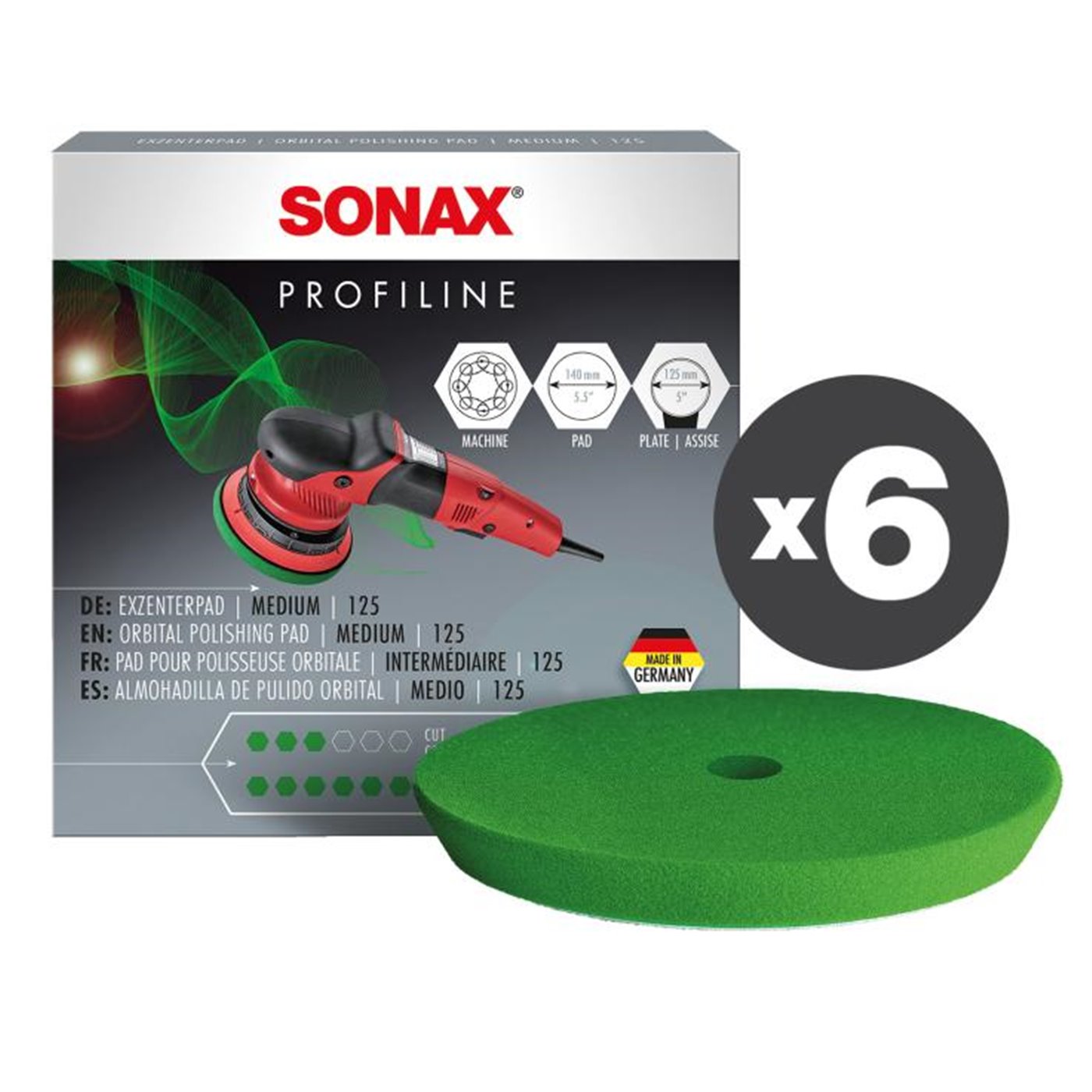 Spugna per lucidatura di media durezza, a pori fini con foro centrale, progettata per l’uso con lucidatrici roto orbitali. Lunga durata e resistenza alla temperatura. Con bordo smussato che garantisce un’ottima maneggevolezza e un lavoro preciso. Diametro 125 mm. Confezione da 6 tamponi in scatola.