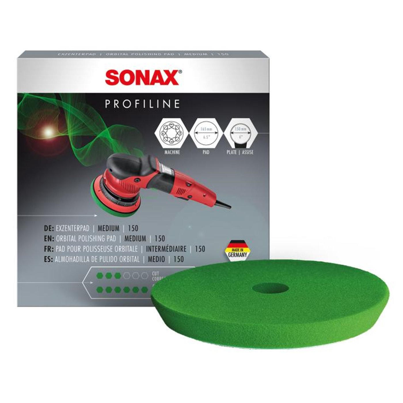 Spugna per lucidatura di media durezza, a pori fini con foro centrale, progettata per l’uso con lucidatrici roto orbitali. Lunga durata e resistenza alla temperatura. Con bordo smussato che garantisce un’ottima maneggevolezza e un lavoro preciso. Diametro 150 mm. Confezione: scatola da 1 tampone.