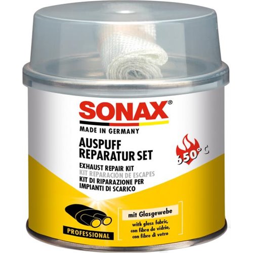 - Kit composto da pasta sigillante SONAX per impianti di scarico e uno speciale nastro di tessuto in fibra di vetro