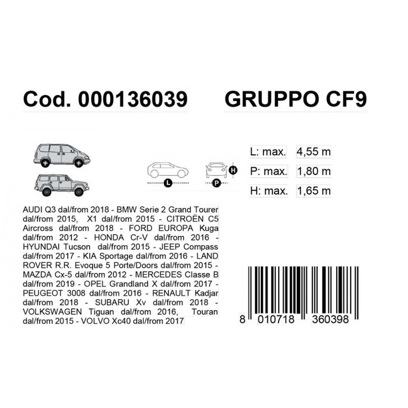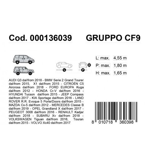 - Dimensioni (lungh. x largh. x alt.): 455 x 180 x 165 cm