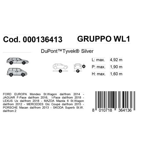 TOPCOVER AUTO TYVEK SILVER MOD.WL1