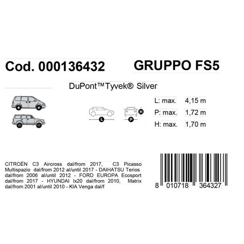 TOPCOVER AUTO TYVEK SILVER MOD.FS5