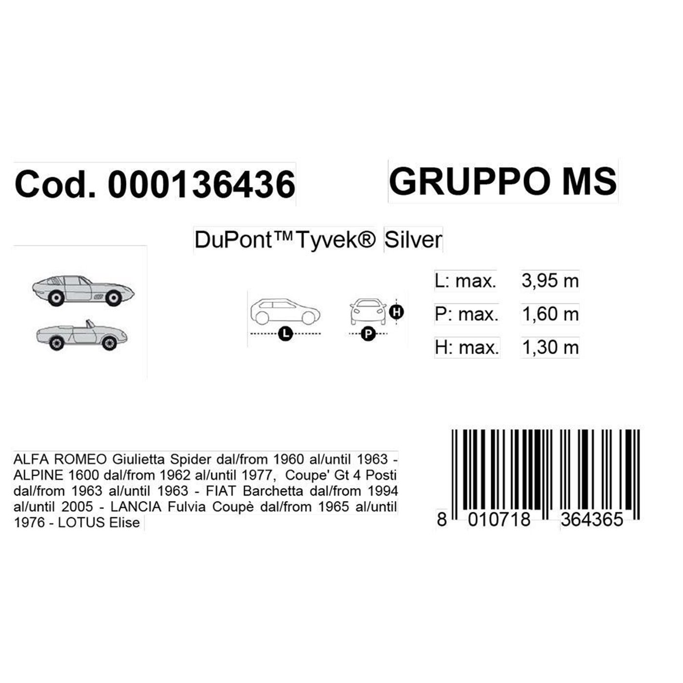 TOPCOVER AUTO TYVEK SILVER MOD.MS