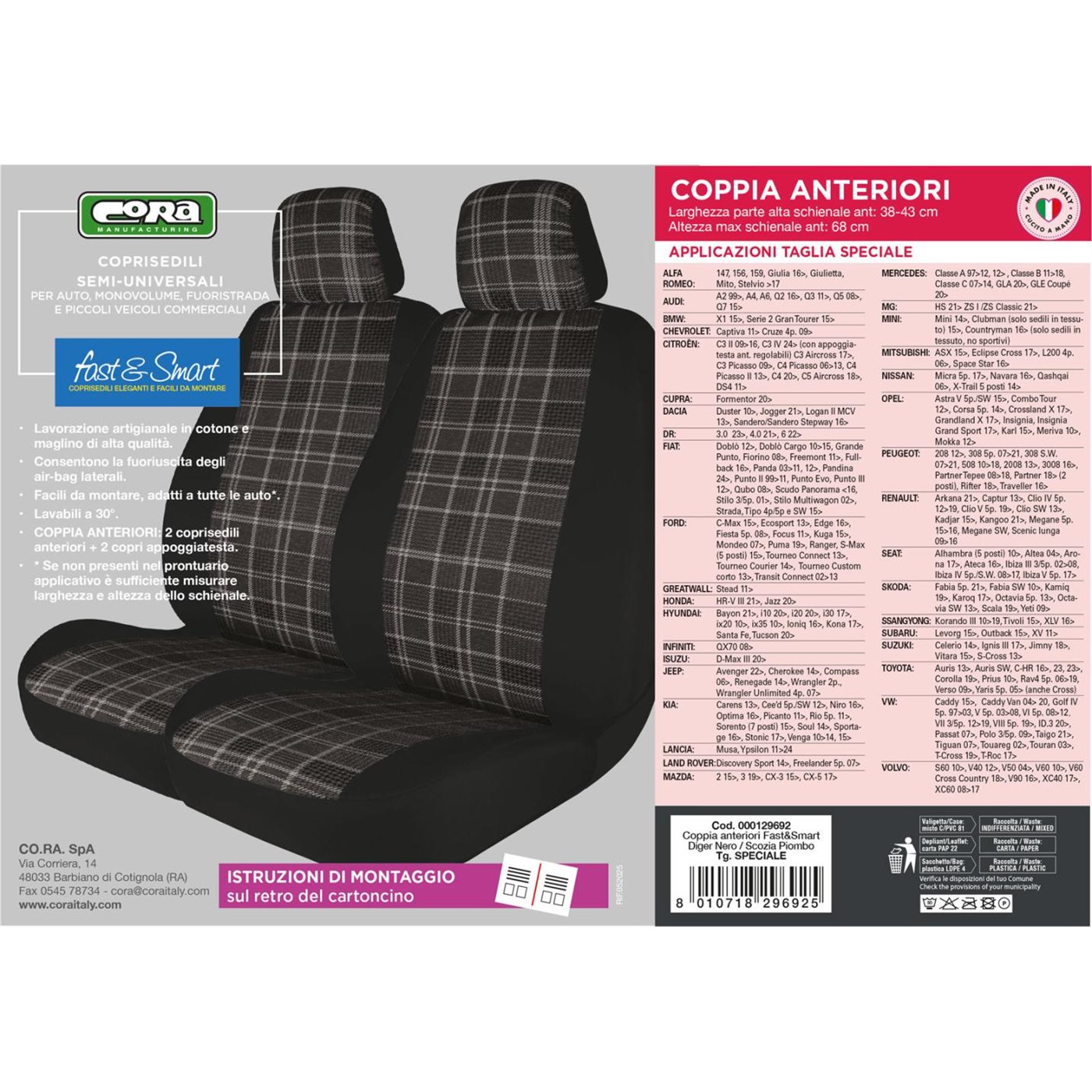 Coprisedili anteriori Fast&Smart tg. speciale tess. misto cotone piombo