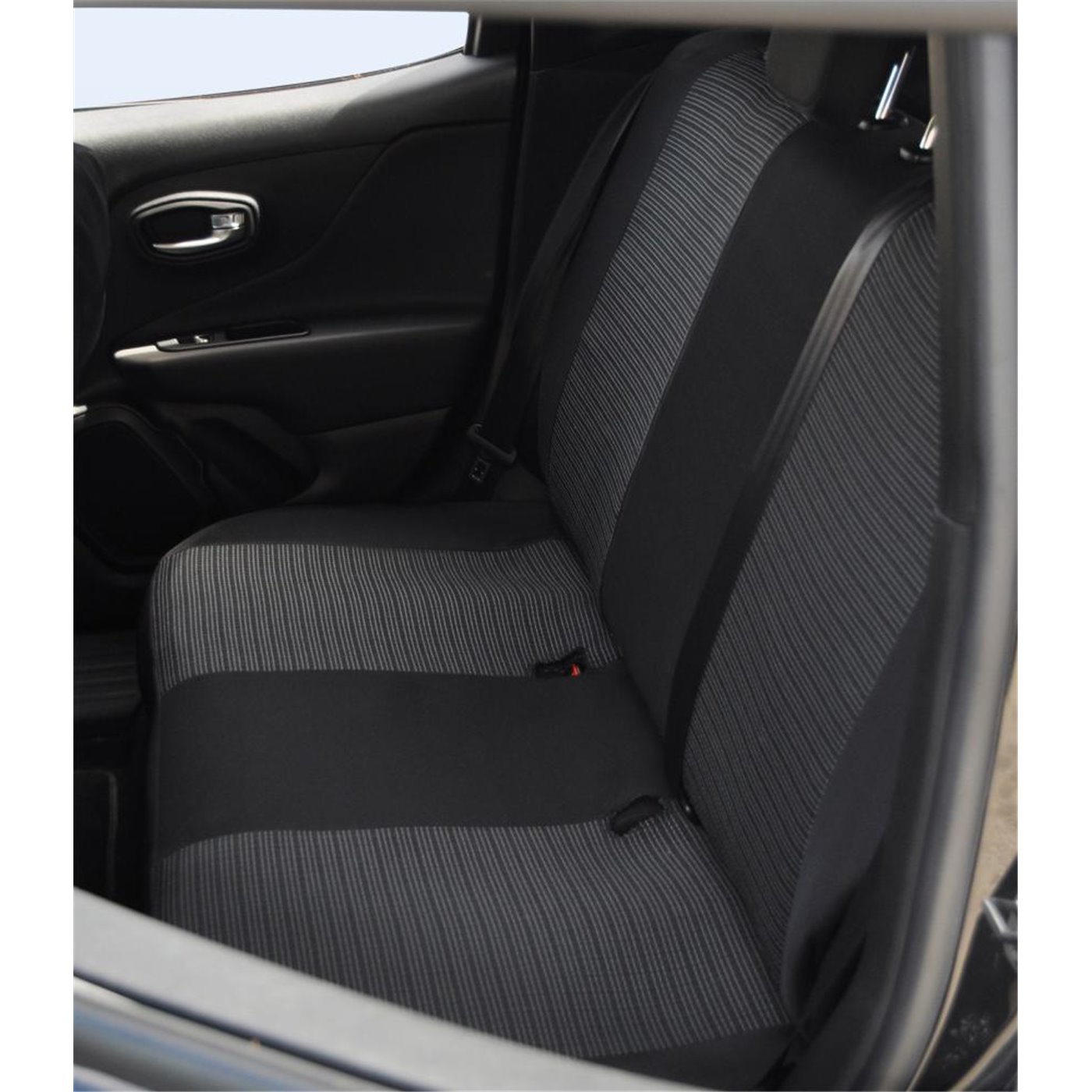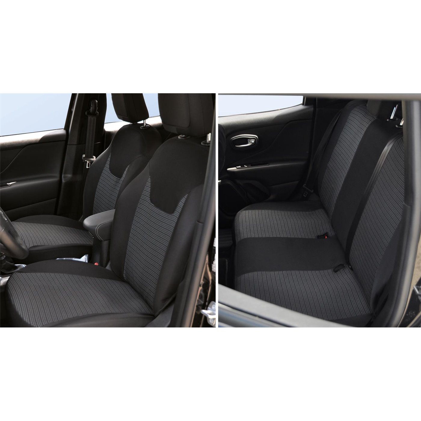 Serie completa coprisedili personalizzati JEEP Renegade 14˃/Compass 17˃, DACIA Duster I 10˃18 / Sandero 20˃ tess. rigato nero