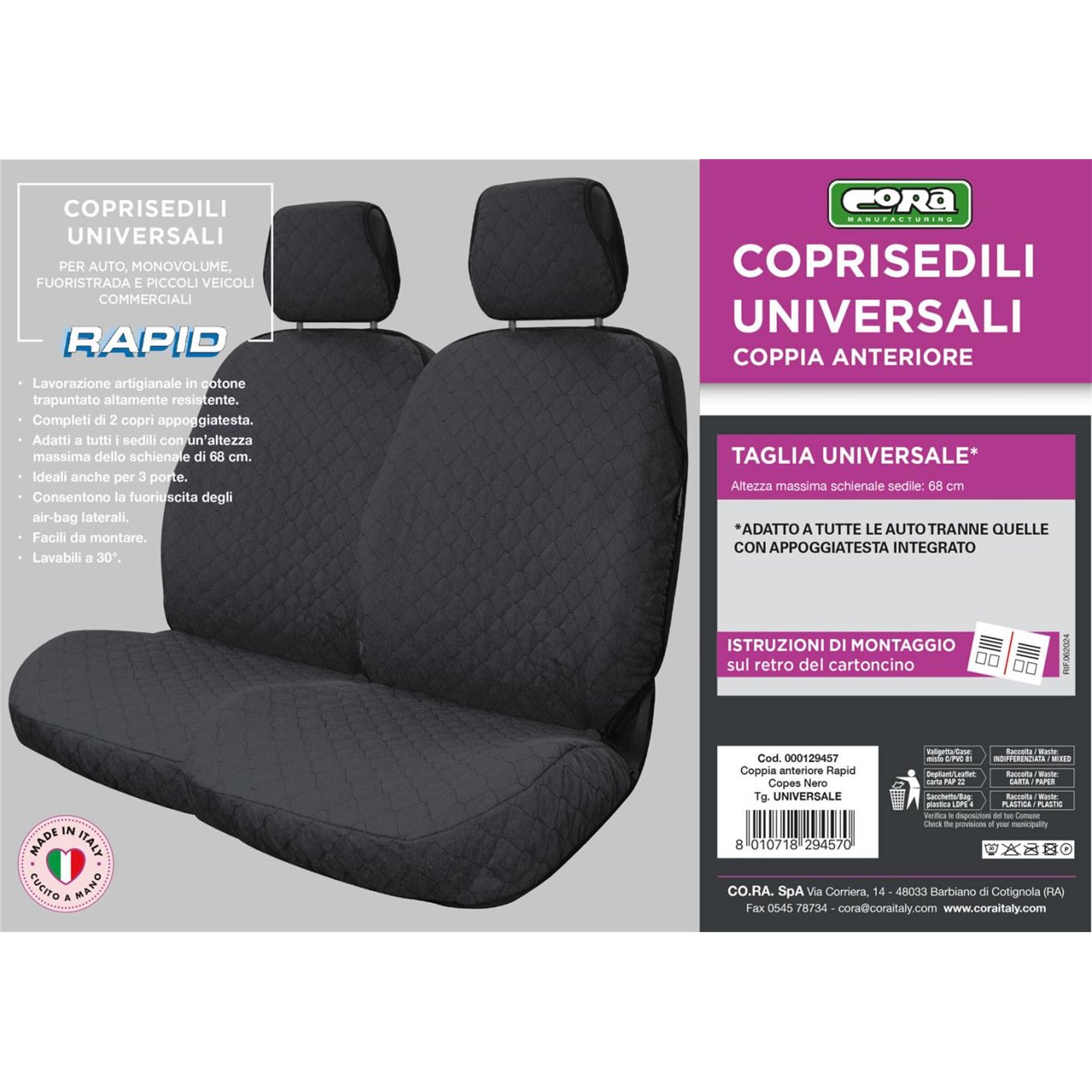 Coprisedili anteriori Rapid tg. universale tess. cotone trapuntato nero