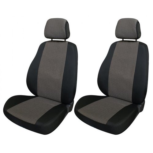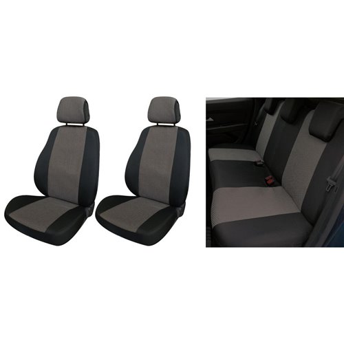 Serie completa coprisedili anteriori e posteriori in cotone e maglino di alta qualità accoppiati con imbottitura in spugna da 3,5 mm. Compatibili con tutti i sedili aventi lo schienale di altezza max 62 cm e la parte alta di larghezza 38-43 cm. Consentono la fuoriuscita degli airbag laterali. Coprisedili posteriori composti da: coprischienale provvisto di 3 cerniere (che consentono l'apertura nelle combinazioni 1/3, 1/2 e 2/3) e copriseduta intero. 5 copri appoggiatesta in dotazione. Prodotti in Italia con tessuti italiani. Facili da montare, lavabili a 30°.