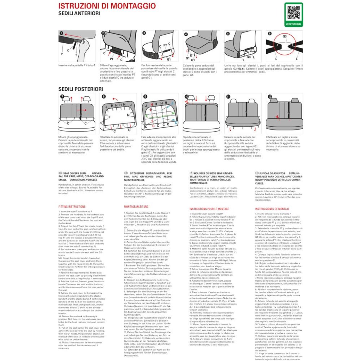 - Serie completa coprisedili anteriori e posteriori