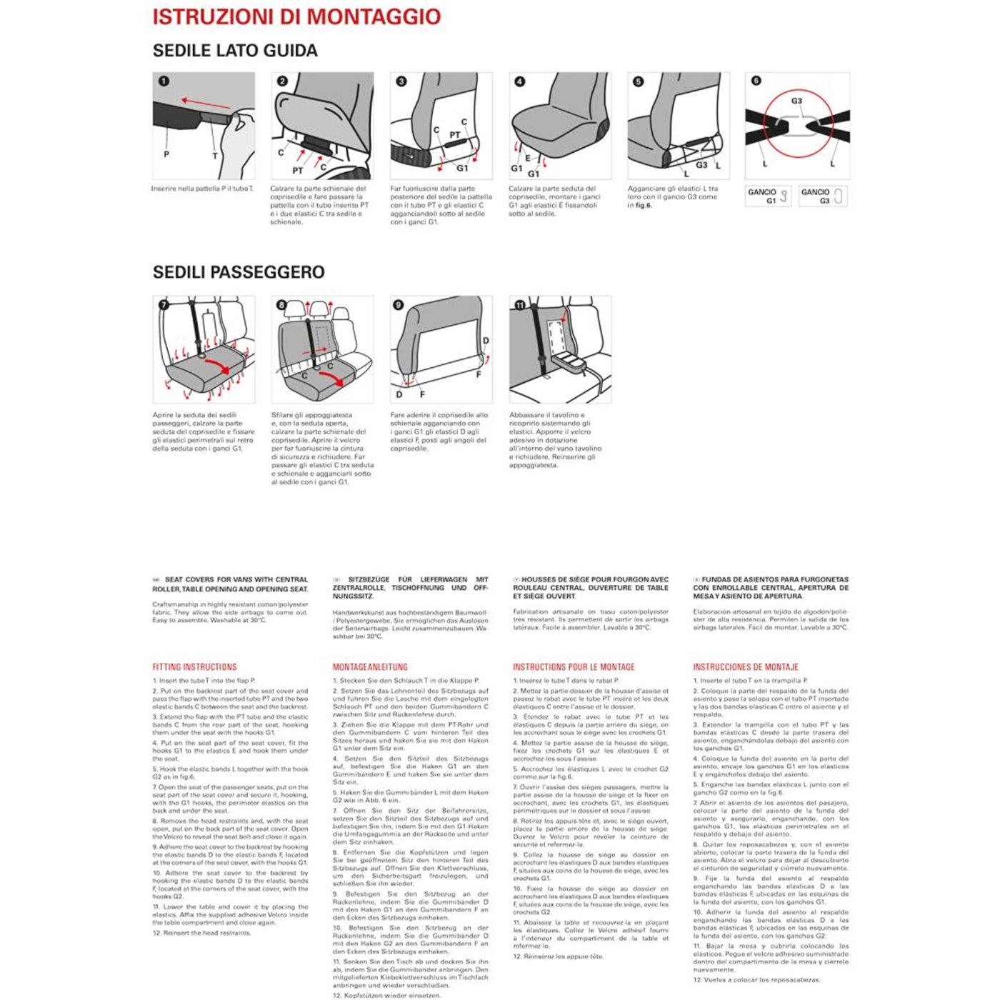 Coprisedili anteriori in tessuto elasticizzato misto cotone. Per furgoni con cintura ad arrotolatore centrale, bracciolo, apertura tavolino portaoggetti sullo schienale lato passeggeri e seduta apribile. Compatibili con: CITROEN Jumper - FIAT Ducato - OPEL Movano 21> - PEUGEOT Boxer. Set composto da coprisedile anteriore lato guida + coprisedili anteriori lato passeggero (copri appoggiatesta disponibili su richiesta - cod. 001700104). Prodotti in Italia con tessuti italiani.