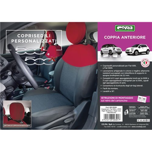 Coprisedili anteriori personalizzati Fiat 500X e 500L tess. nero/rosso