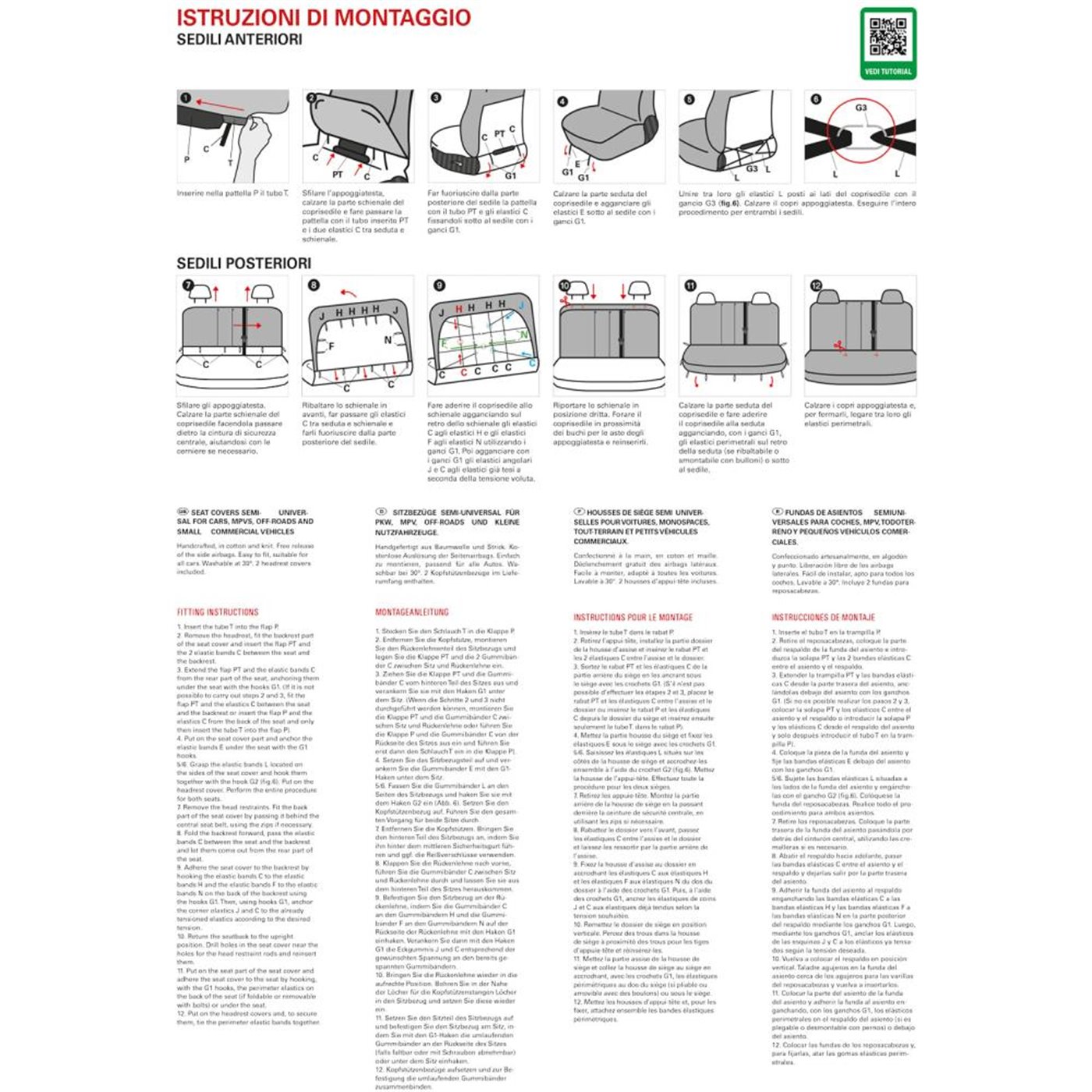 - Serie completa coprisedili anteriori e posteriori