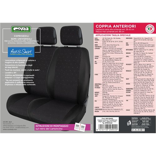 Coprisedili anteriori Fast&Smart tg. speciale tess. misto cotone nero/black&color