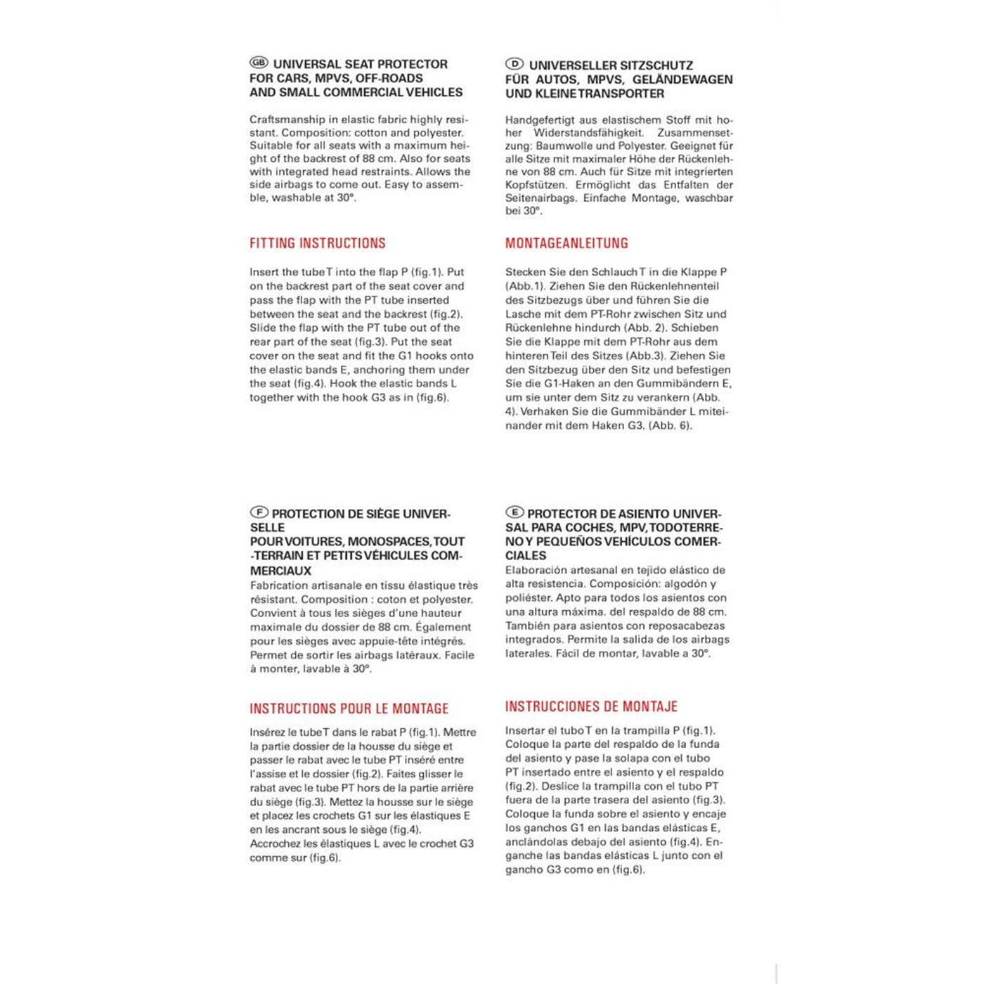 Coprisedile anteriore in tessuto elasticizzato misto cotone. Adatto a tutti i sedili, anche con appoggiatesta integrato, con schienale alto fino a 88 cm (compreso appoggiatesta). Consente la fuoriuscita degli air-bag laterali. Facile da montare, lavabile a 30°. Prodotto in Italia con tessuti italiani.