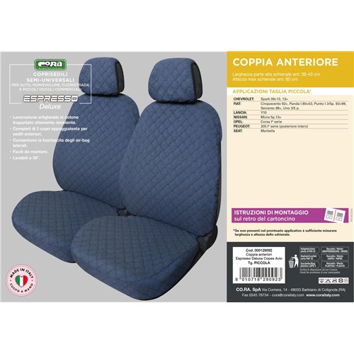 Coprisedili anteriori Espresso Deluxe tg. piccola tess. cotone trapuntato avio