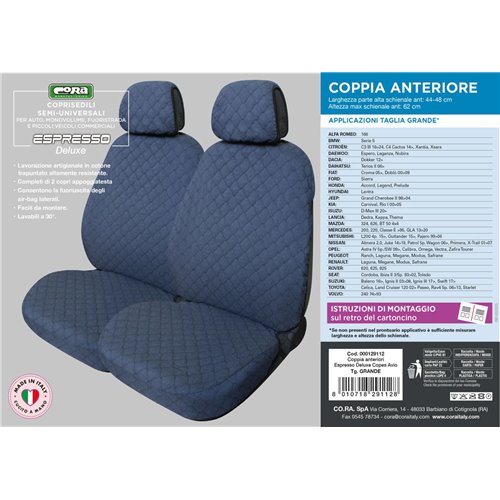 Coprisedili anteriori Espresso Deluxe tg. grande tess. cotone trapuntato avio