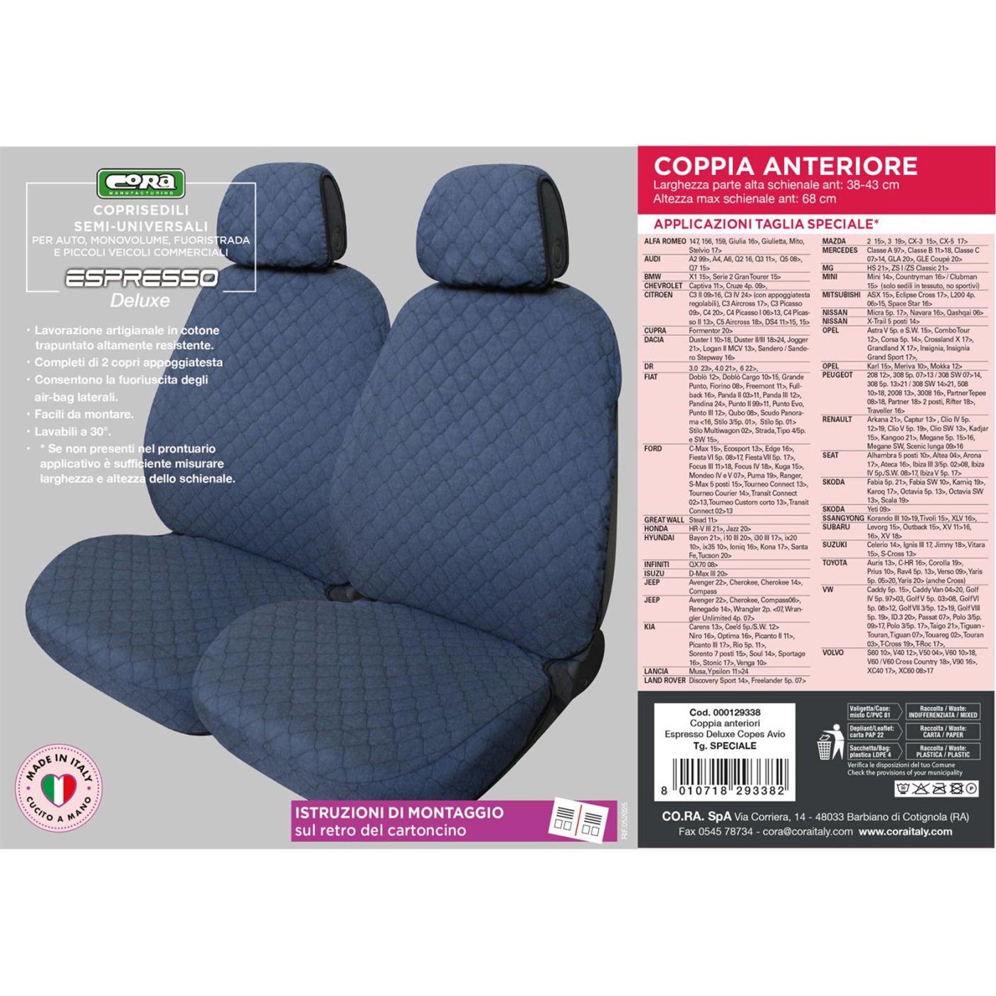 Coprisedili anteriori Espresso tg. speciale tess. cotone trapuntato avio