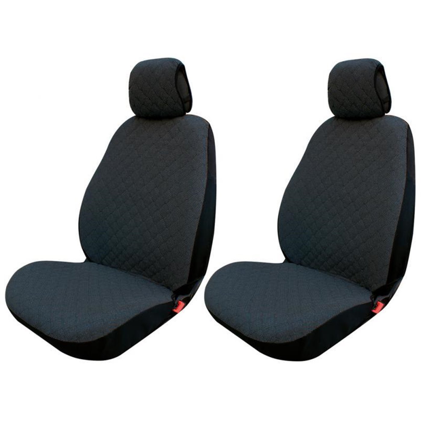 Coppia coprisedili anteriori in cotone trapuntato e maglino di alta qualità accoppiati con imbottitura in spugna da 3,5 mm. Completi di copri appoggiatesta. Compatibili con tutti i sedili aventi lo schienale di altezza max 68 cm e la parte alta di larghezza 38-43 cm. Consentono la fuoriuscita degli air-bag laterali. Facili da montare, lavabili a 30°. Prodotti in Italia con tessuti italiani.