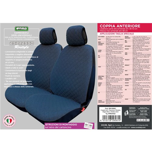 Coprisedili anteriori Espresso Restyle tg. speciale tess. misto cotone trapuntato avio/nero