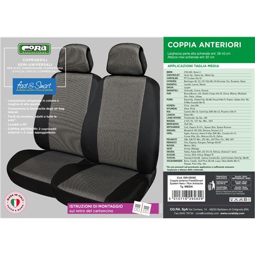 Coprisedili anteriori Fast&Smart tg. media tess. misto cotone antracite/nero