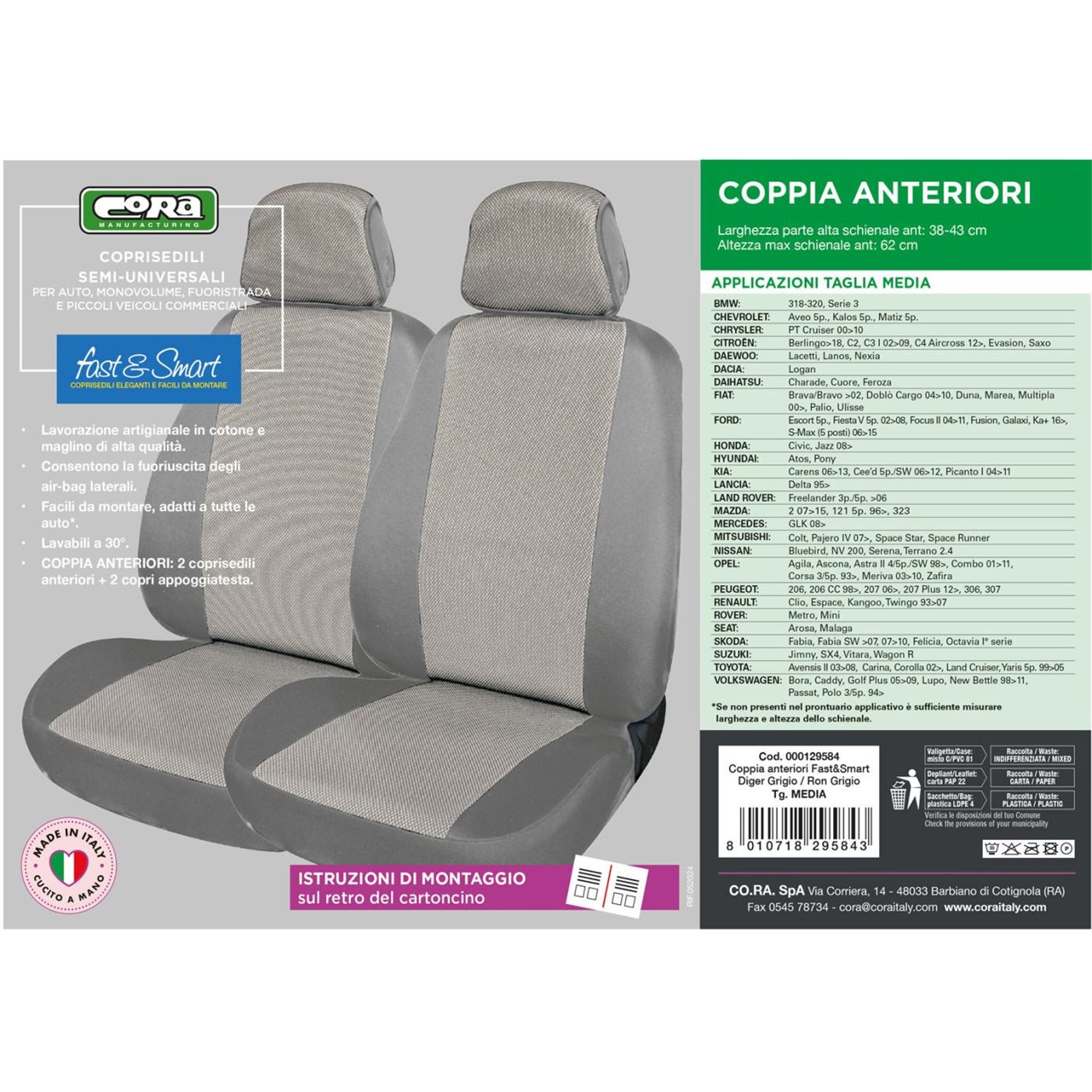 Coprisedili anteriori Fast&Smart tg. media tess. misto cotone grigio