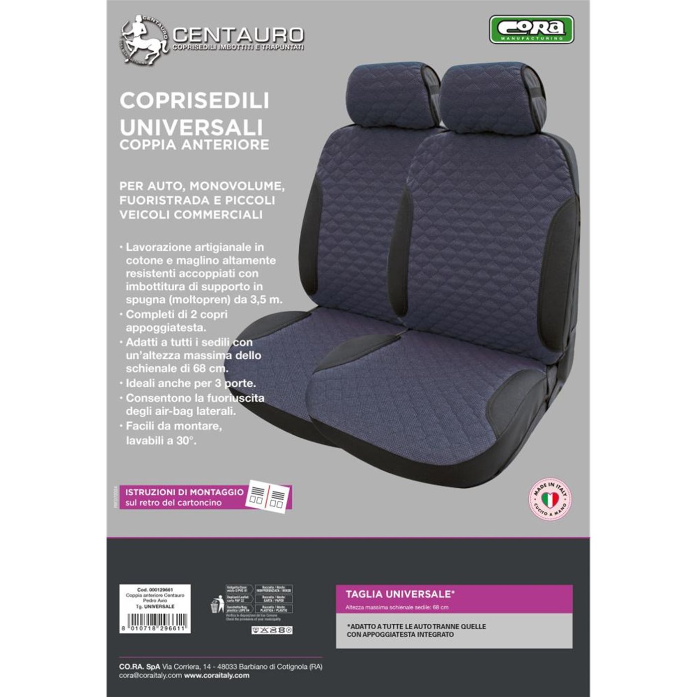 Coprisedili anteriori Centauro tg. universale tess. misto cotone trapuntato avio/nero