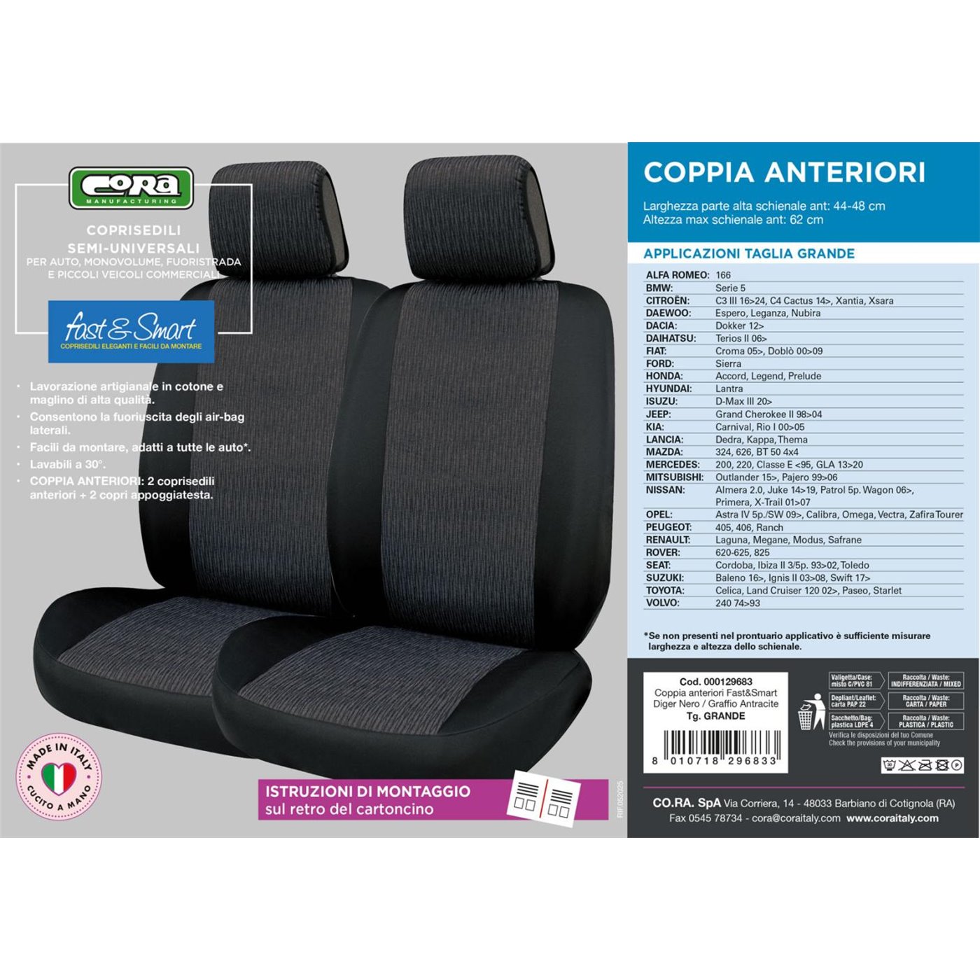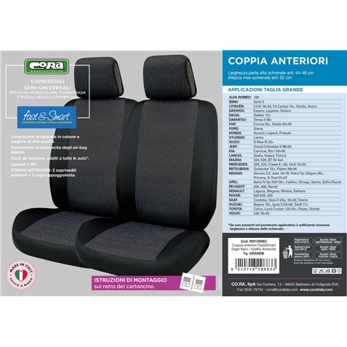 Coprisedili anteriori Fast&Smart tg. grande tess. misto cotone antracite/nero