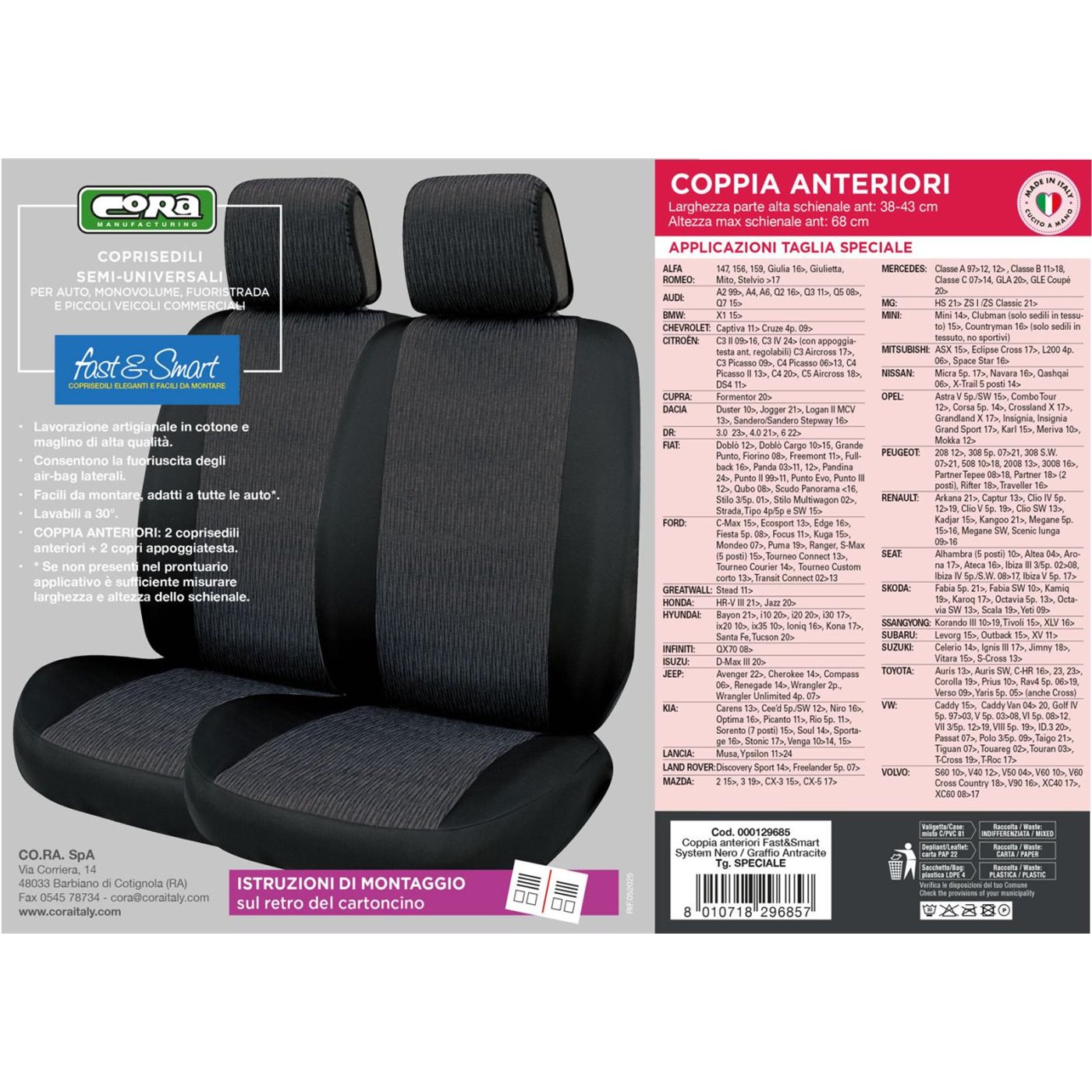 Coprisedili anteriori Fast&Smart tg. speciale tess. misto cotone antracite/nero