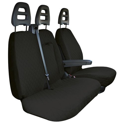 Coprisedili anteriori in cotone trapuntato di alta qualità. Per furgoni con cintura ad arrotolatore centrale, bracciolo, apertura tavolino portaoggetti sullo schienale lato passeggeri e seduta apribile. Compatibili con: CITROEN Jumper - FIAT Ducato - OPEL Movano 21> - PEUGEOT Boxer. Set composto da coprisedile anteriore lato guida + coprisedili anteriori lato passeggero (copri appoggiatesta disponibili su richiesta - cod. 001700104). Prodotti in Italia con tessuti italiani.