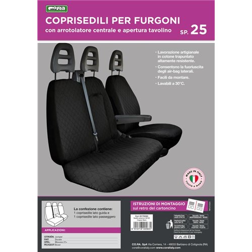 Coprisedili per furgoni tg. SP25 tess. cotone trapuntato nero