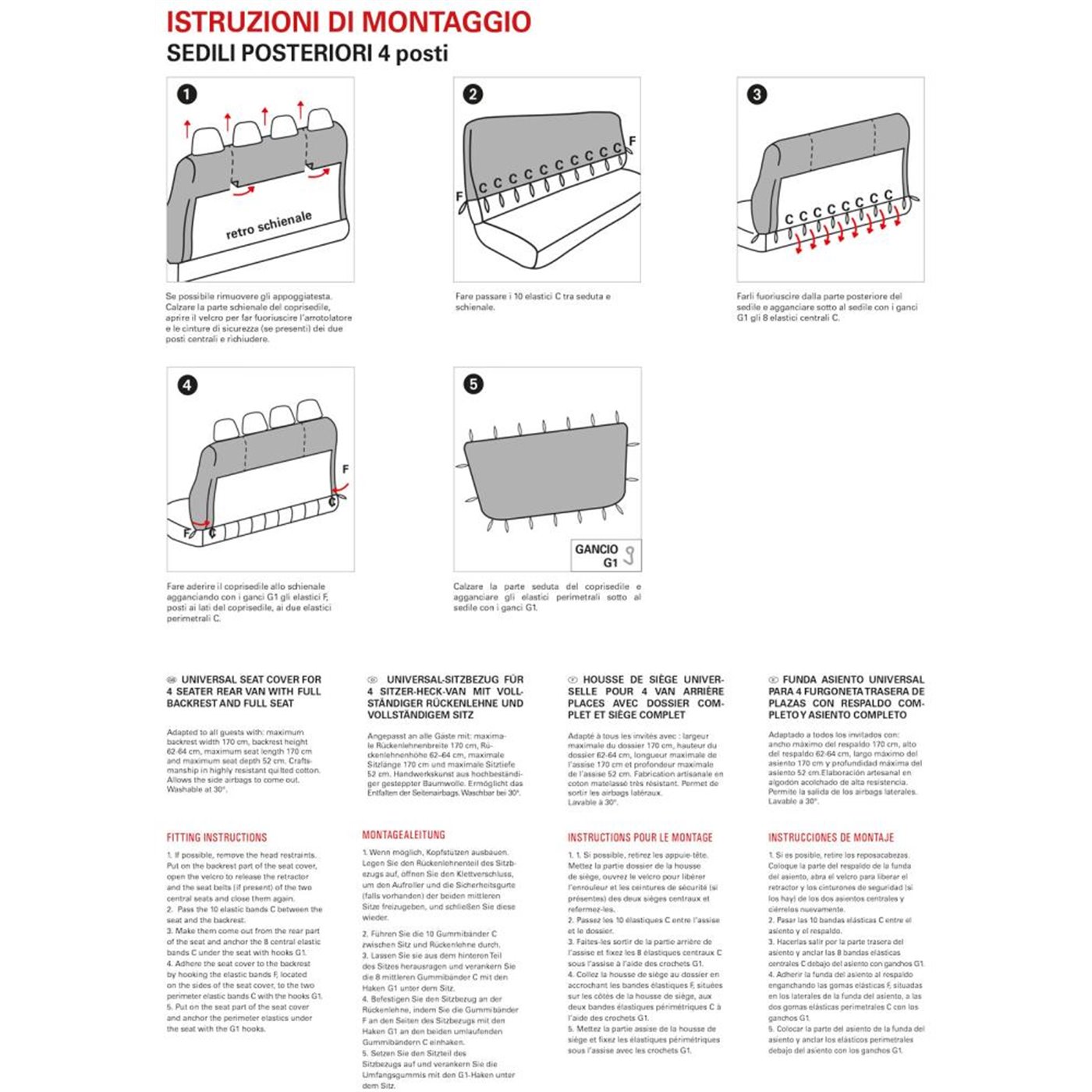 - Per sedili 4 posti con schienale e seduta interi