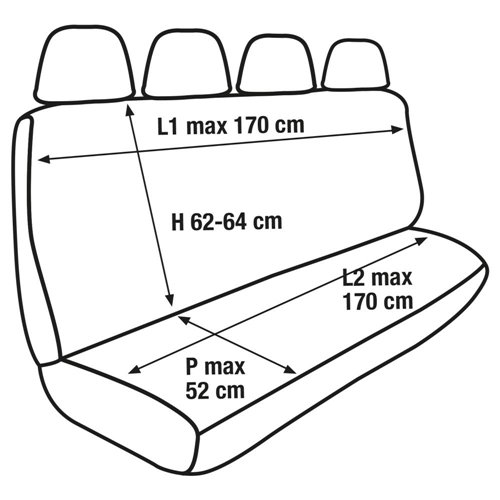Coprisedile posteriore universale per furgone. Adatto a tutti i sedili posteriori a 4 posti con schienale e seduta interi (larghezza max schienale 170 cm, altezza schienale 62-64 cm, lunghezza max seduta 170 cm, profondità max seduta 52 cm). In tessuto elasticizzato misto cotone. Prodotto in Italia con tessuti italiani.