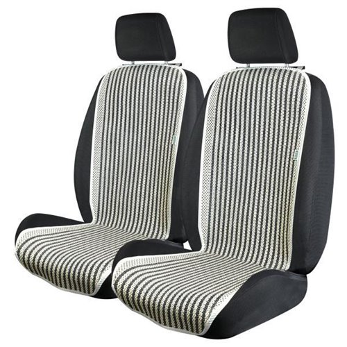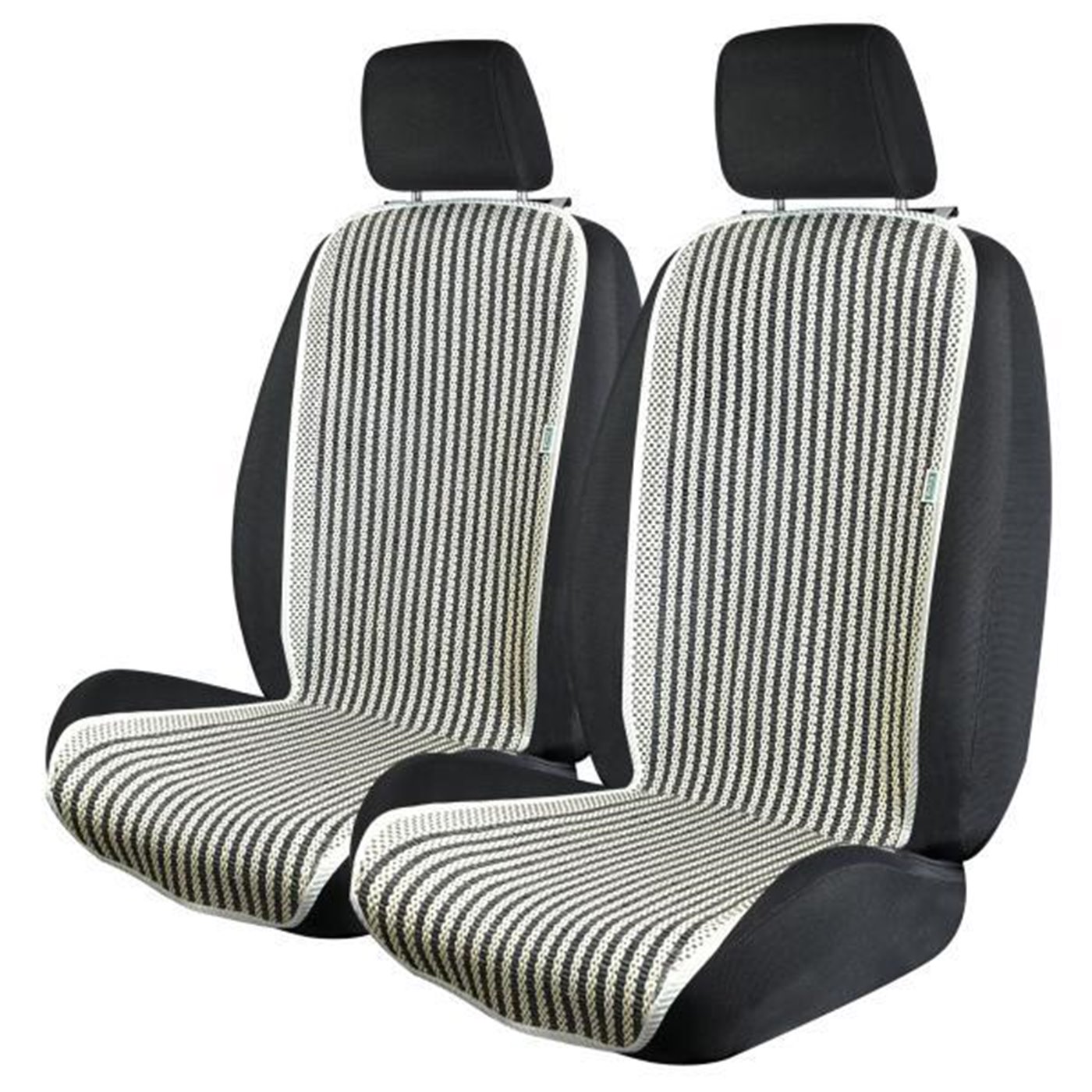 Coppia coprisedili anteriori universali in carta tessile. Adatti in tutte le stagioni ed in modo particolare per quella estiva in quanto realizzati con materie prime traspiranti di origine naturale. Facili da montare, si adattano a tutti i sedili di auto, fuoristrada e piccoli veicoli commerciali con un'altezza massima dello schienale di 62 cm. Progettati in modo da consentire la fuoriuscita degli airbag laterali. Prodotti in Italia con tessuti italiani. Lavabili a mano.