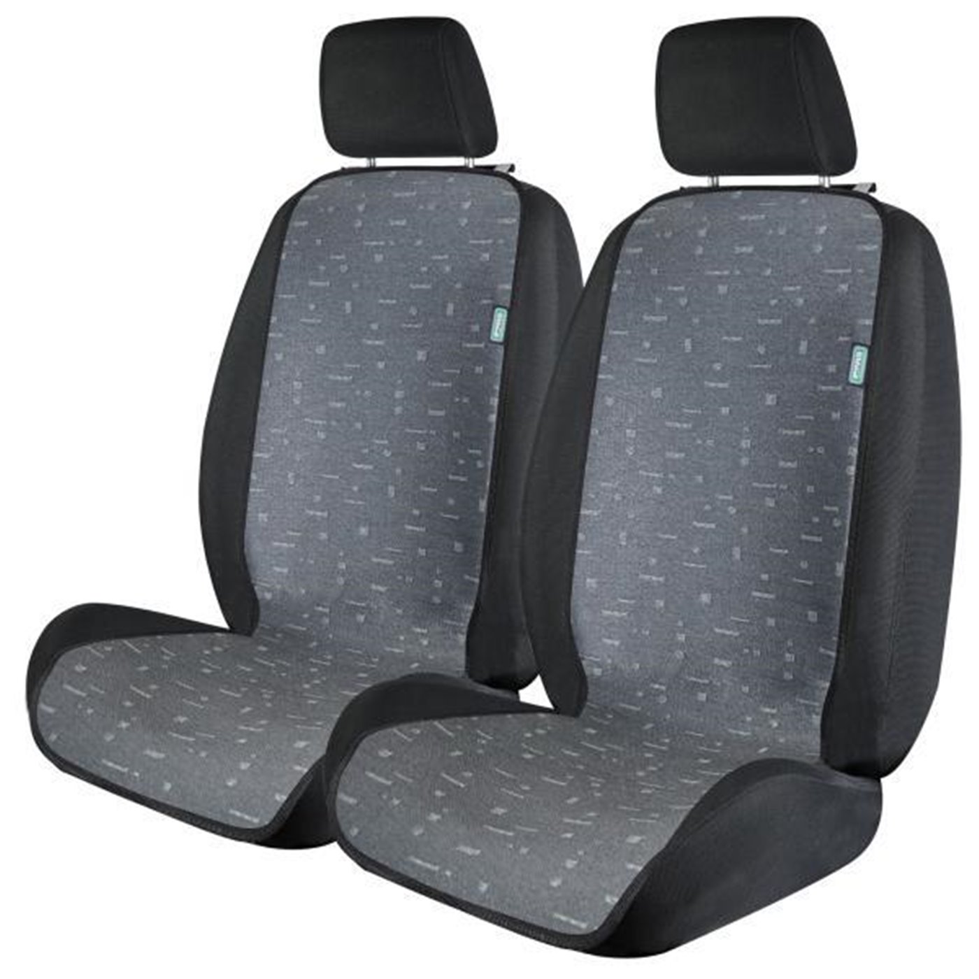 Coppia coprisedili anteriori universali. Doubleface: carta tessile a maglia larga con imbottitura in spugna da 3,5 mm su un lato e cotone di alta qualità sull'altro lato. Adatti per tutte le stagioni ed in modo particolare per quella estiva in quanto realizzati con materie prime traspiranti di origine naturale. Facili da montare, si adattano a tutti i sedili di auto, fuoristrada e piccoli veicoli commerciali con un'altezza massima dello schienale di 62 cm. Progettati in modo da consentire la fuoriuscita degli airbag laterali. Prodotti in Italia con tessuti italiani. Lavabili a mano.