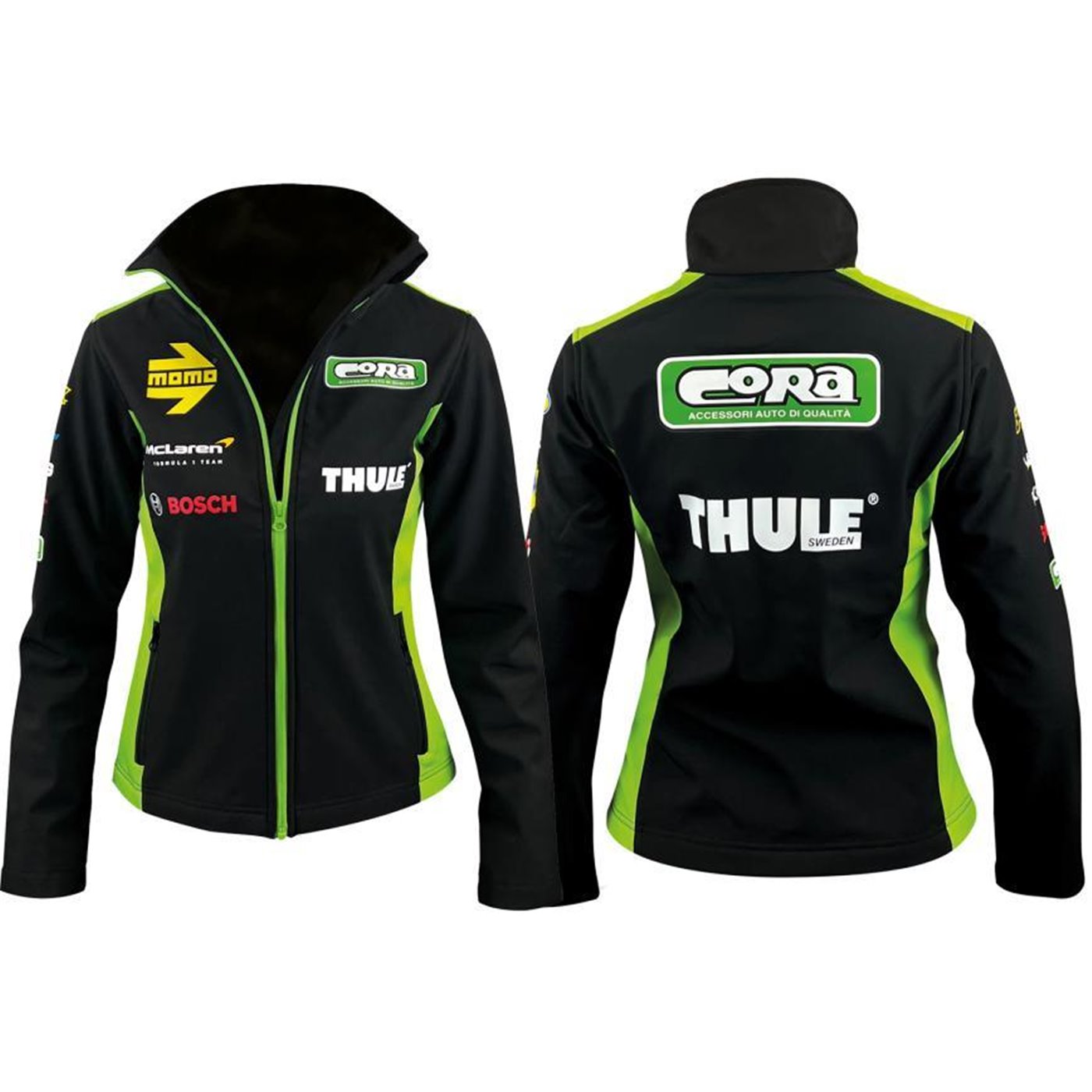 Softshell da donna in neoprene con morbida fodera interna in micropile. Loghi termosaldati su busto, schiena e maniche. Maniche lunghe, zip integrale, collo alto, tasche con zip. Vestibilità molto piccola (si consiglia di acquistare la propria taglia per una vestibilità esatta e attillata oppure una taglia in più per un maggior comfort).