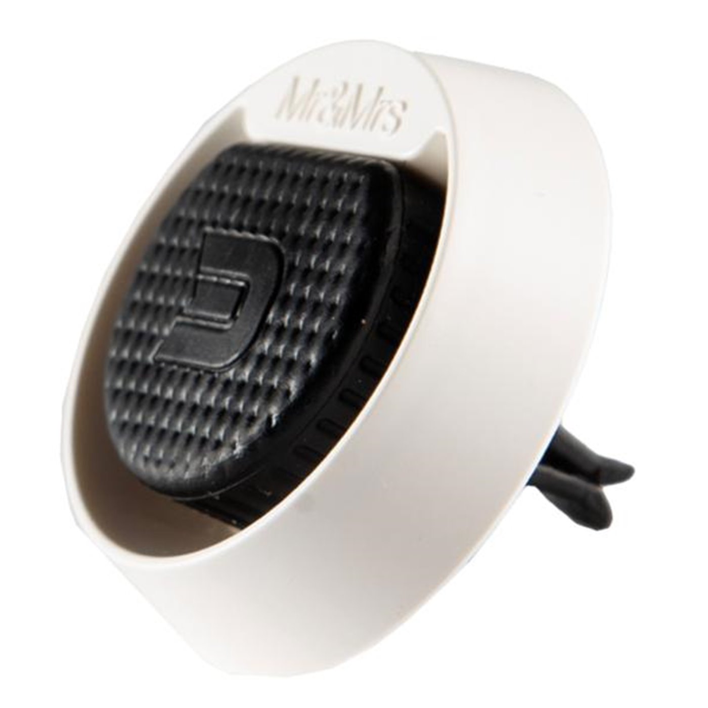 Profumatore per auto da agganciare alle bocchette dell'aria. Design arrotondato, essenziale e moderno, con cover in ABS e EVA profumata. Fino a 45 giorni di profumazione. Dimensioni: diametro 5 x 1,3 cm. Colore bianco. Fragranza sandal & bergamot. Made in Italy.