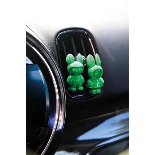 Coppia deodoranti per auto disegnati dall’artista giapponese Rumiko Takeda e prodotti in Italia. Realizzati in EVA profumata e applicabili alle bocchette dell'aria tramite clip. Assicuranno fino a 45 giorni di profumazione. Dimensioni: 5,9 x 2,2 x 6,3 cm.
