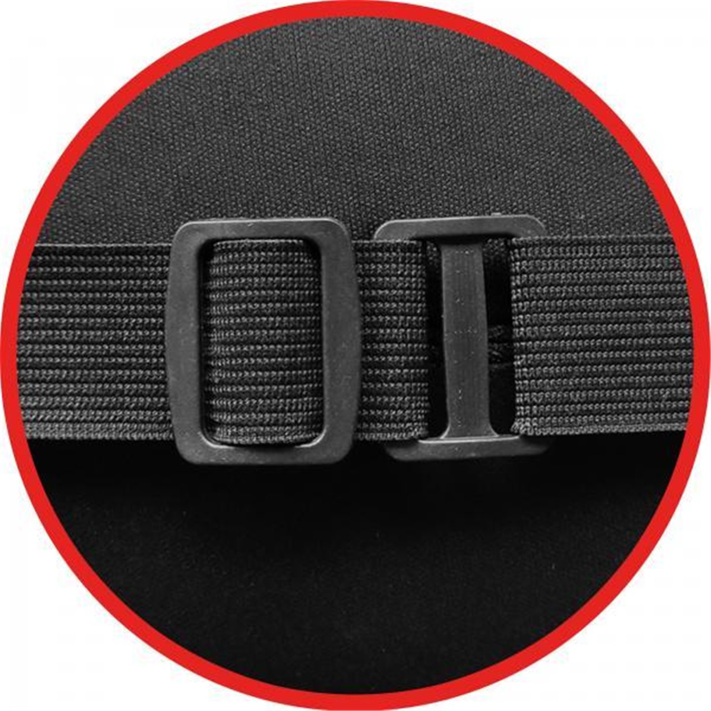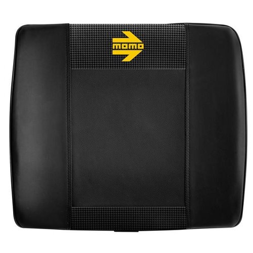 Supporto lombare in memory foam rivestita in ecopelle. Favorisce una posizione di guida corretta e rilassante. Con fascia elastica regolabile sul retro. Colore nero/carbon con logo MOMO giallo frontale e su entrambi i lati. Dimensioni: 34 (L) x 11 (P) x 33 (A) cm.