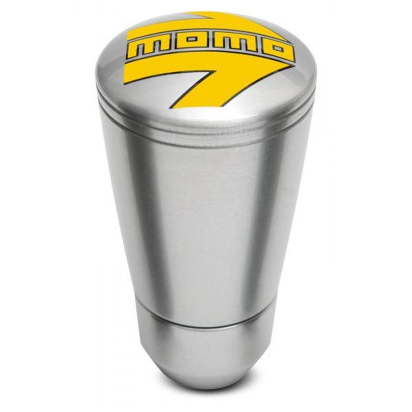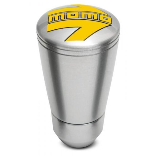 Pomello del cambio completamente in alluminio con logo MOMO a freccia. Colore argento lucido.