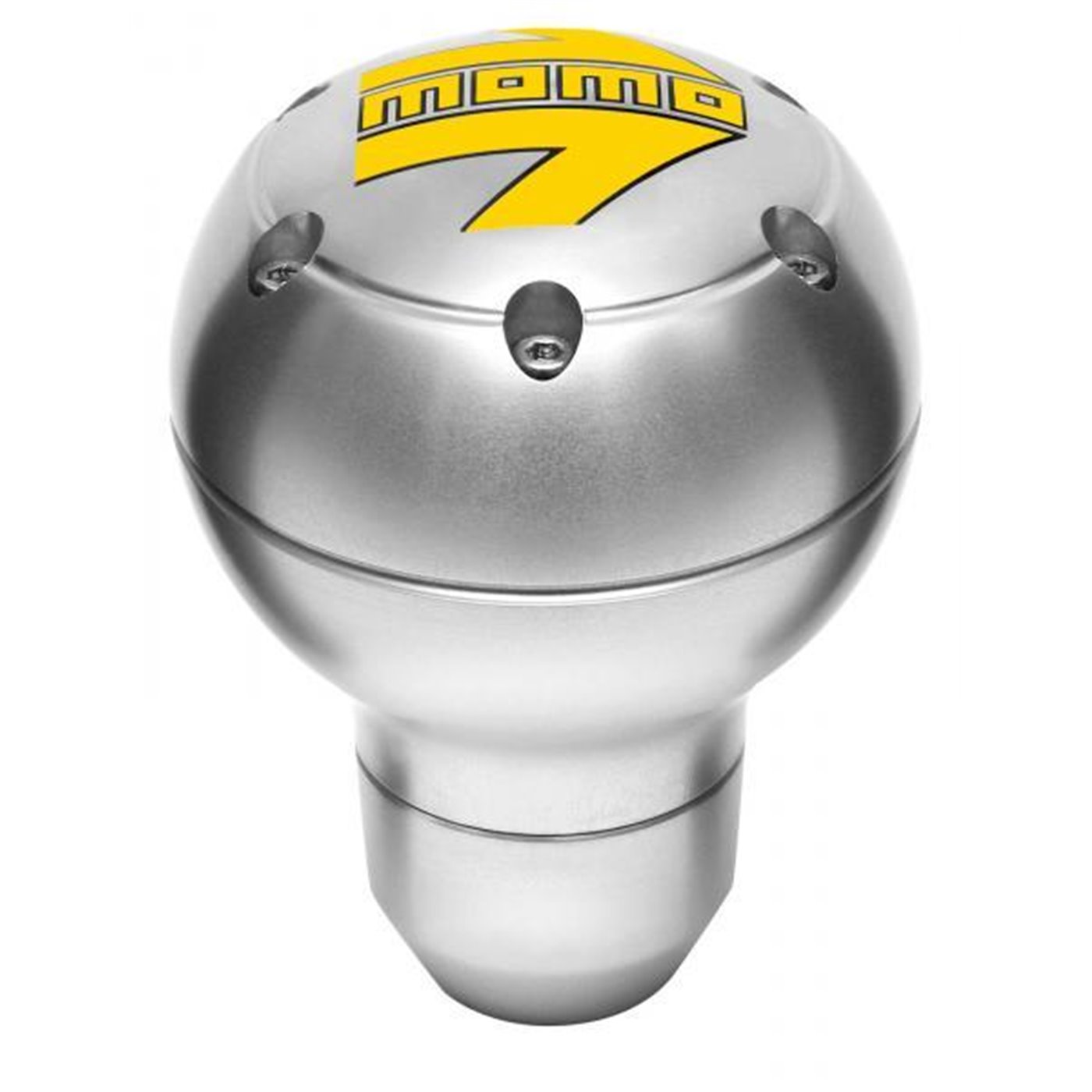 Pomello del cambio completamente in alluminio con un'elegante finitura argento lucida. Logo MOMO a freccia.