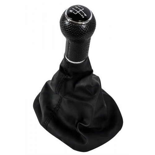 Pomello e cuffia per leva cambio manuale 5 marce (diametro innesto pomello 12 mm). Colore nero. Compatibile con: VOLKSWAGEN Golf IV 97>, Bora 98>. Codice ricambio originale: 1J0711113EG.