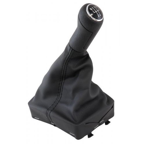 Pomello e cuffia per leva cambio manuale 5 marce. Colore nero. Compatibile con: VOLKSWAGEN Polo IV 01>05. Codice ricambio originale: 6Q1711113.