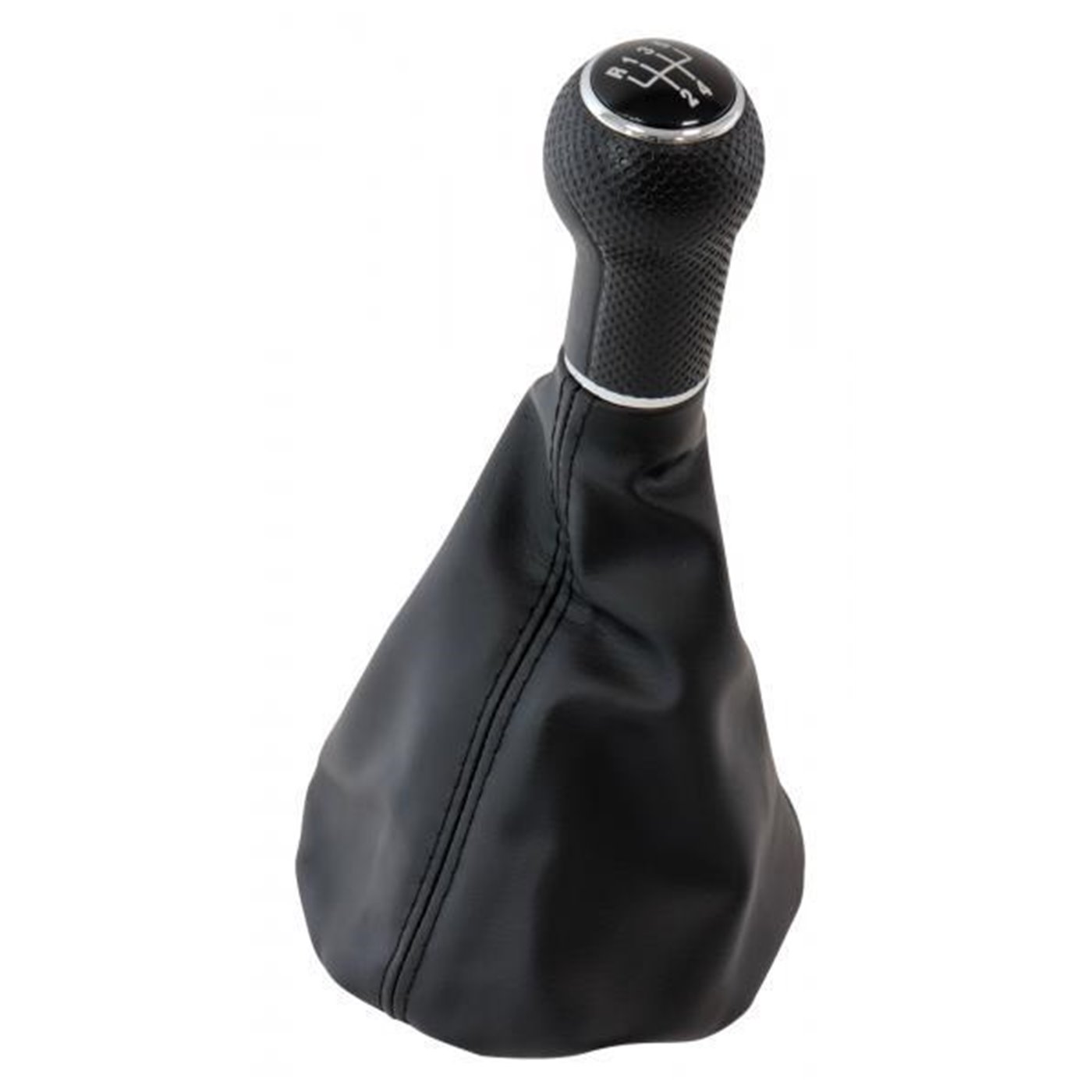 Pomello e cuffia per leva cambio manuale 5 marce. Colore nero. Compatibile con: VOLKSWAGEN Golf III 91>, Jetta III 93>98, Passat 93>01 (B4/B5).