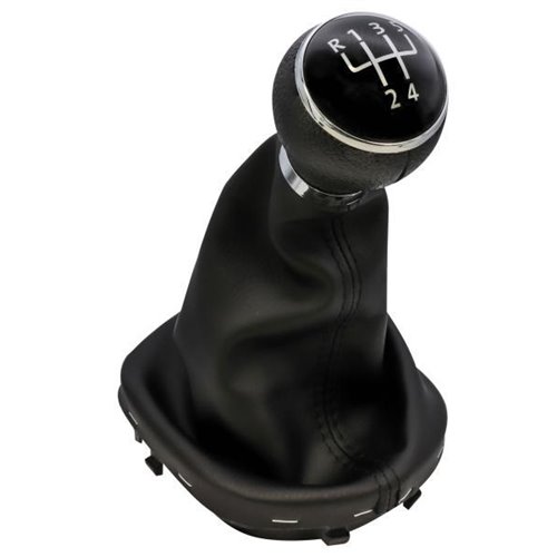 Pomello e cuffia per leva cambio manuale 5 marce. Compatibile con: VOLKSWAGEN Caddy III 04>10, Touran I 03>15. Diametro innesto pomello 12 mm. Colore nero. Codice ricambio originale: 1T0711113N - 1T0711456 - 1J0711113EG.
