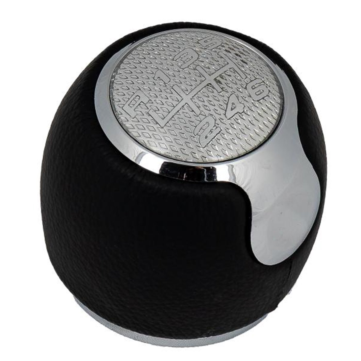 Pomello per cambio manuale 6 marce. Colore nero/argento. Compatibile con: ALFA ROMEO Mito 08>. Codice ricambio originale: 55344848.