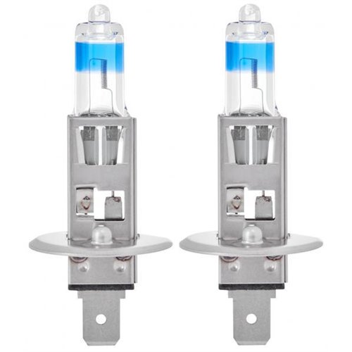 Coppia lampadine H1 12V 55W in grado di produrre una luce bianchissima, simile alla luce del giorno, per una guida notturna più sicura e confortevole ed un'illuminazione tempestiva della segnaletica stradale. Grazie all'elevata temperatura di colore (fino a 5000K) creano l'effetto dei fari a led migliorando l'aspetto dell'auto ed integrandosi perfettamente con i fari DRL. Rispetto alle lampadine alogene standard proiettano su strada fino al 50% di luce in più e si caratterizzano per un fascio luminoso più profondo (+ 25 m). Omologate per uso stradale e perfettamente intercambiabili con le lampadine presenti di serie (non richiedono alcuna modifica dell’impianto elettrico del veicolo).
